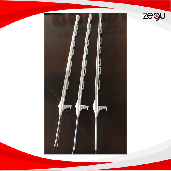Poste plástico de 1,2 metros para cercos eléctricos, ideal para cercos temporales o equinos. Diseño reforzado tipo “H” para mayor resistencia y estabilidad, con estaca de acero galvanizado para fácil instalación.